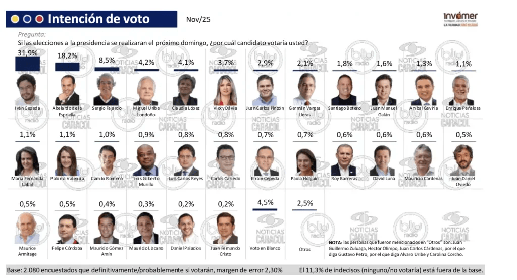 Hace una semana estábamos en el análisis de la encuesta de INVAMER sobre intención de voto para las presidenciales de 2026. Ya se ha decantado la ola de comentarios y análisis de los analistas (SIC).